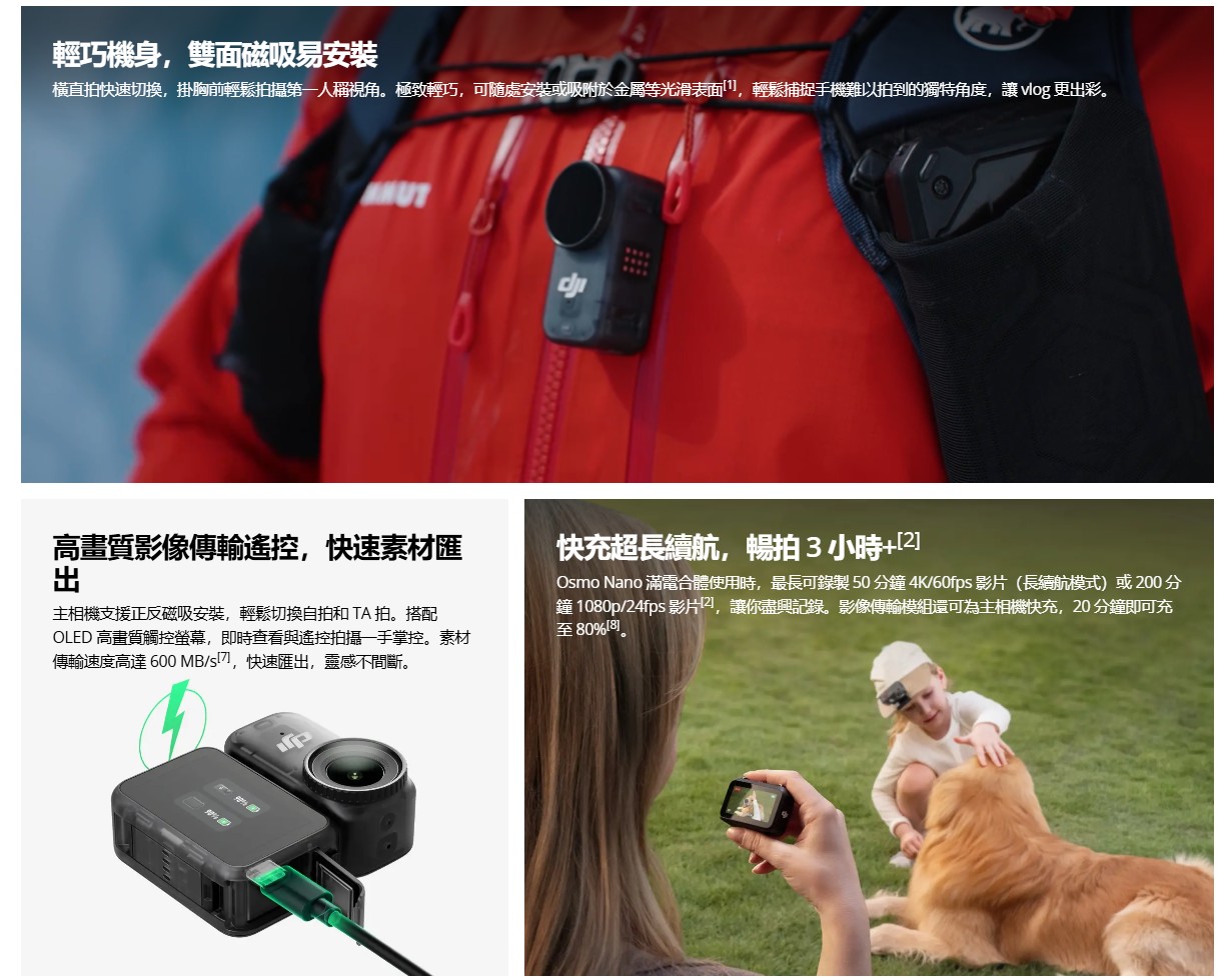 *該數據在 25℃ 室溫下,錄制 1080p/24fps(16:9)視頻、開啟超強增穩、關閉 Wi-Fi 並熄屏條件下測得。實際續航時間可能因設備設置、使用環境等因素有所不同。數據來源於大疆實驗室,僅供參考。